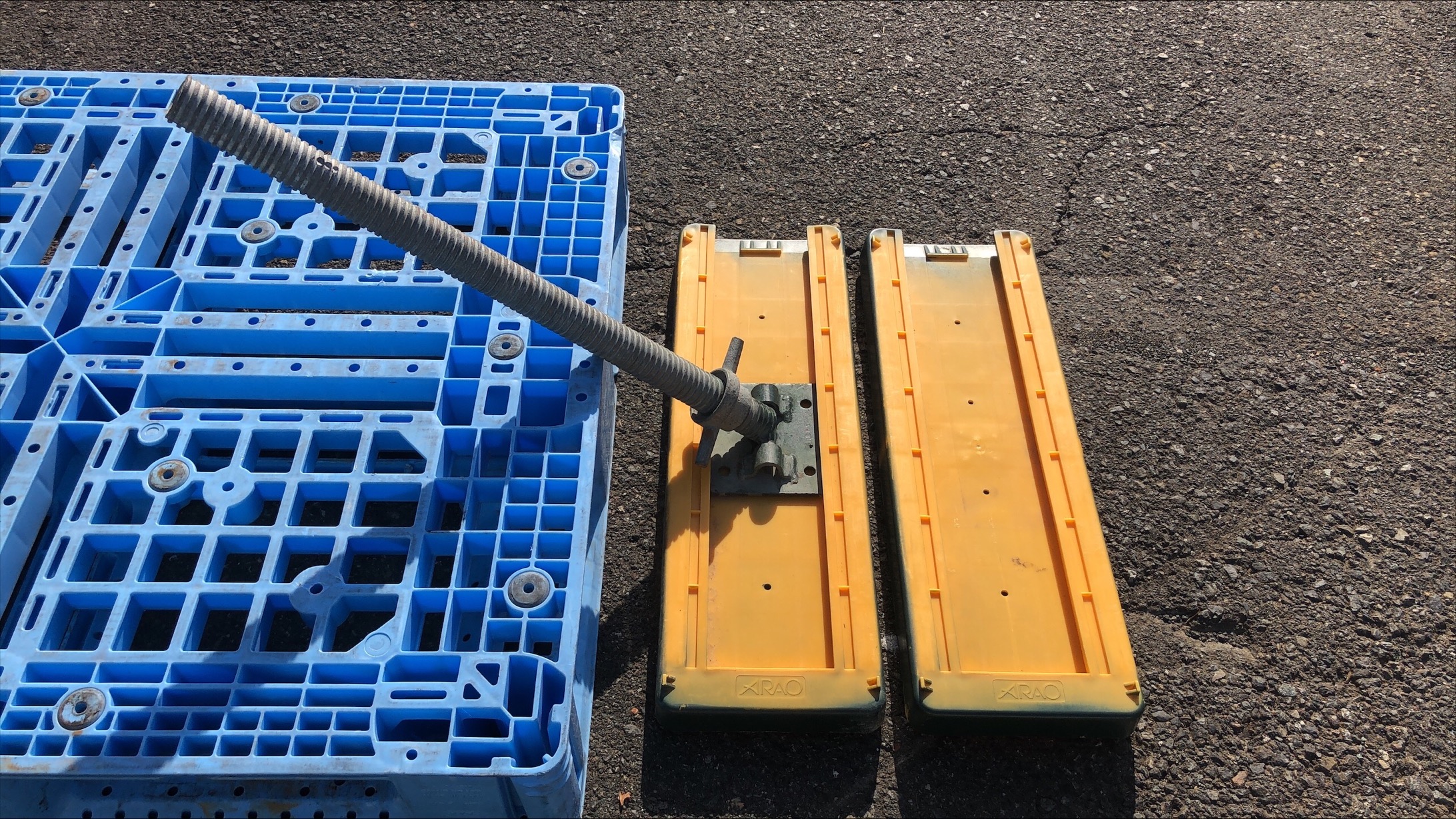 固定ジャッキは単独では使用せず、アンダーベースと呼ばれるプラスチックまたは鉄製の敷版、場合によっては木材を下に敷いて使用します。