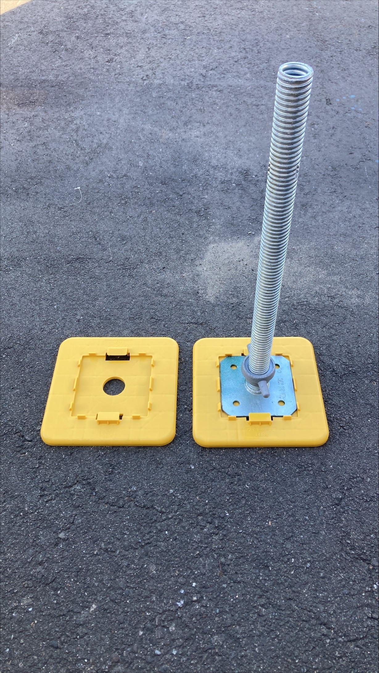 - その上に自在ジャッキベースを載せて、横の位置の調整をしてから、支柱を挿します。