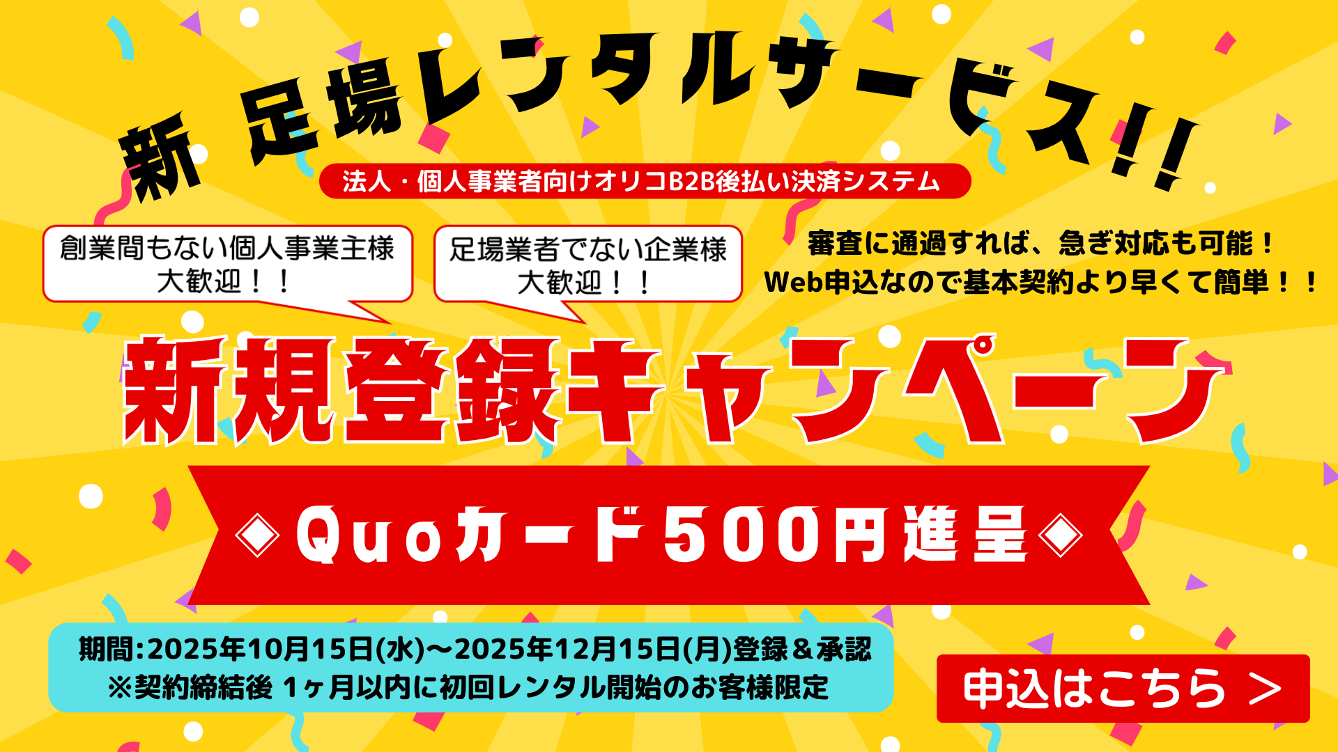 「新足場レンタルサービス」&「オリコB2B 決済サービス」の申込みはWebサイトからいつでも申込み可能です。
